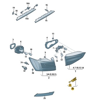 • pokud je v názvu uvedeno "UK" nebo "GB" světla jsou demontována z vozu s levostraným řízením - opačné paraboly - oslňující pro evropský provoz